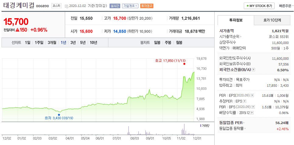 ① 태경케미컬 006890