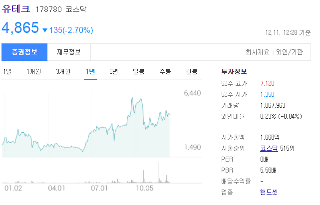 △유테크 178780은 국내 전동 킥보드 전문 제조업체로서 2018년 라이다 센서를 이용한 '퍼스널 모빌리티 세이프티 시스템' 특허 출원을 시작