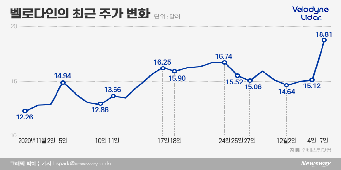 지난 스팩 합병을 완료한 루미나(Luminiar)는 11월 이후 300%의 주가 상승률을 기록하고 있으며, 합병 상장 후 급락세를 나타냈던 벨로다인(Velodyne)사의 주가도 11월 이후 50%의 상승세를 나타내고 있다.