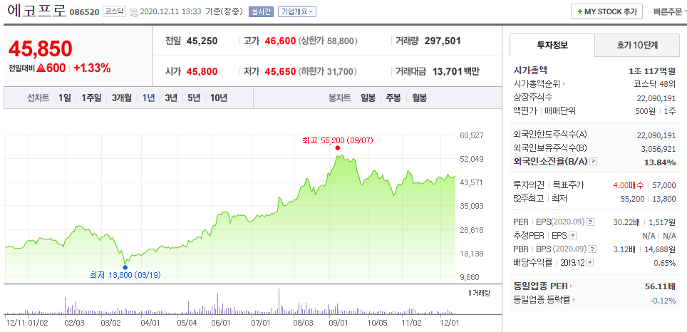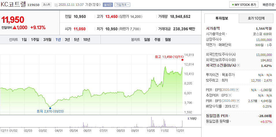 ↑문재인 대통령이 탄소중립 정책을 추진한다는 소식에 상한가 기록