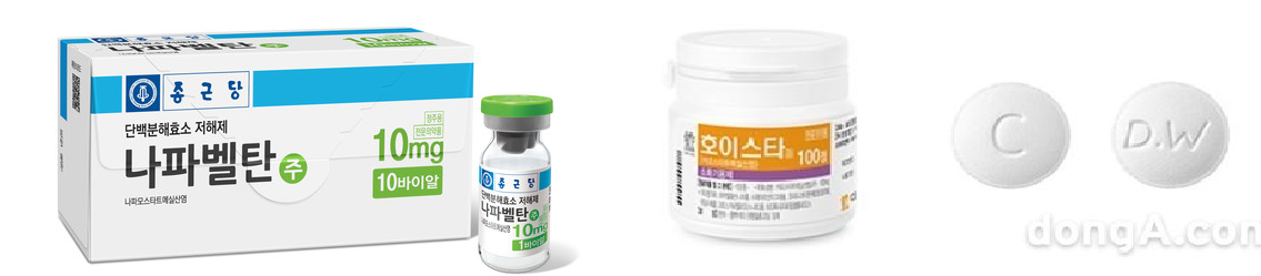 대웅제약의 '호이스타정(카모스타트)' VS 종근당 '나파벨탄(나파모스타트)' 구도로 나파모스타트는 한국파스퇴르 연구소의 약물 재창출 연구에서 코로나 19 치료제로의 개발 가능성을 확인했으며