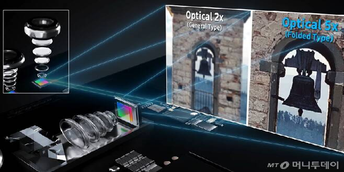 폴디드 카메라는 잠망경 카메라로도 알려져 있다. 빛을 굴절시켜 렌즈와 센서를 수직이 아닌 수평으로 배치한 카메라를 말한다. 이에 스마트폰 두께에 관계없이 고배율 광학줌을 구현할 수 있게 된다.