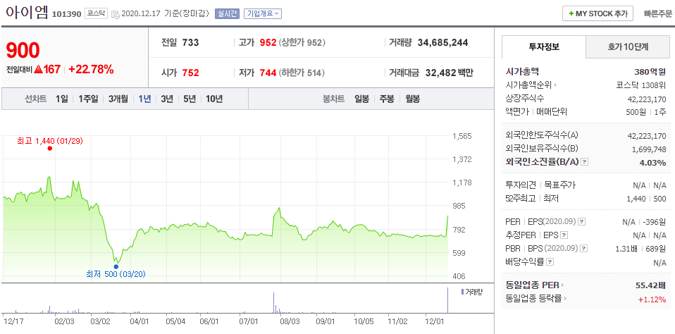 아이엠은 전자제품에 적용되는 광모듈부품 판매를 주요 사업으로 영위하는 회사.