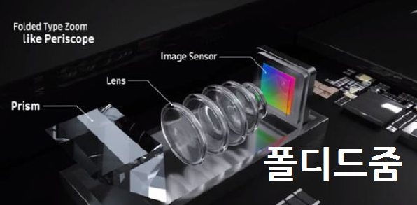 폴디드줌은 여러 개의 렌즈를 수평으로 쌓아 망원 기능은 향상하면서도 두께는 얇게 유지하는 기술이다. 렌즈가 수평으로 쌓이기 때문에 잠망경처럼 빛을 꺾어서 반사하는 프리즘이 필수적이다.