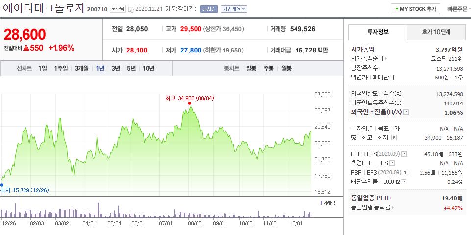 에이디테크놀로지는 시스템 반도체 시장의 ODM 업체이며, 시스템 반도체 요구를 받아 IP업체의 특정 IP와 파운드리 업체인 TSMC 기반으로 시스템 반도체 칩을 개발, 생산하는 팹리스 기업.