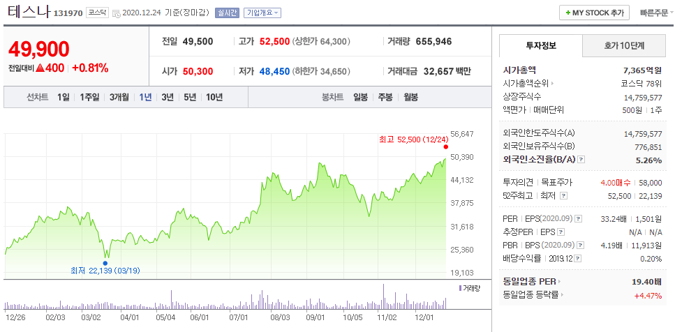 테스나는 2002년 반도체 제조 관련 테스트 및 엔지니어링 서비스를 주요 목적 사업으로 설립되어 현재 반도체 테스트 사업 진행 중인 회사.