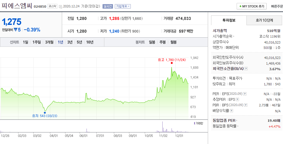 피에스엠씨는 반도체 리드프레임을 주종으로 생산하는 사업을 영위하는 회사.
