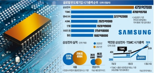 삼성전자의 시스템 LSI/파운드리 사업부의 내년 매출은 올해 17조 3000억 원 → 21조 4000억 원(24% 증가) 원으로 삼성전자 기업가치 재평가의 근간이 될 전망으로 D램 관련주 중 대장주 움직임 부각