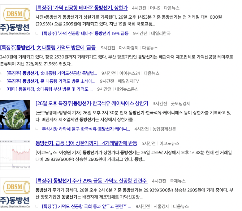 동방선기는 신공항 후보지잍 가덕도와 가까운 곳에 본사가 위치해 있다는 이유로 가덕도 신공항 관련주 테마로 움직임