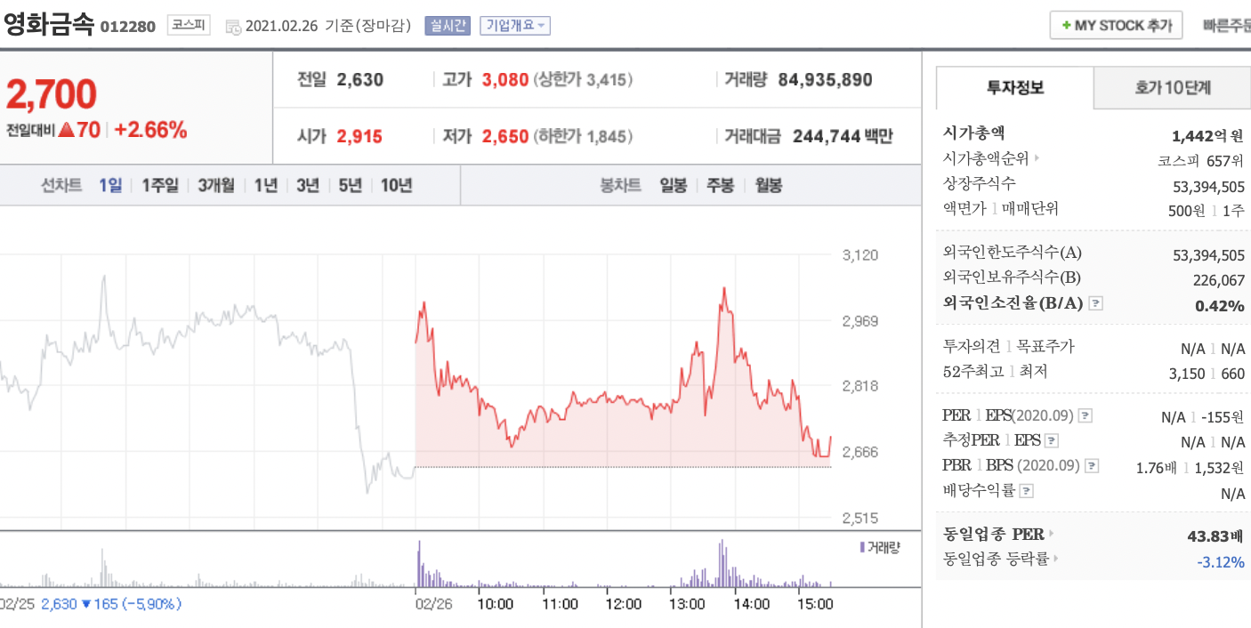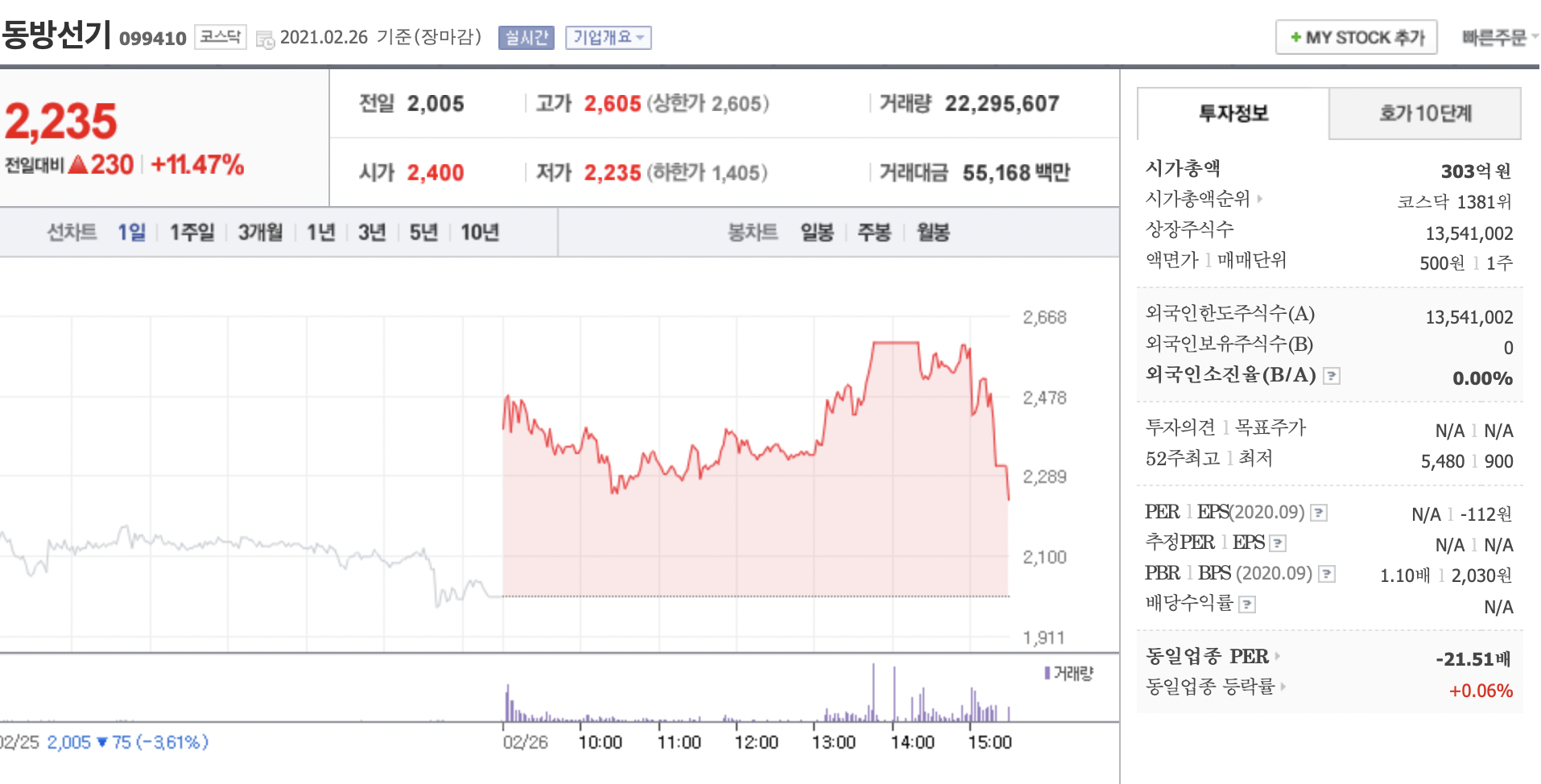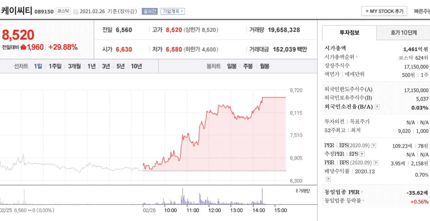 동방선기 주가 & 영화금속 주가 & 케이씨티 주가 & 케이씨티 상한가 & 2월 26일 주식 정리