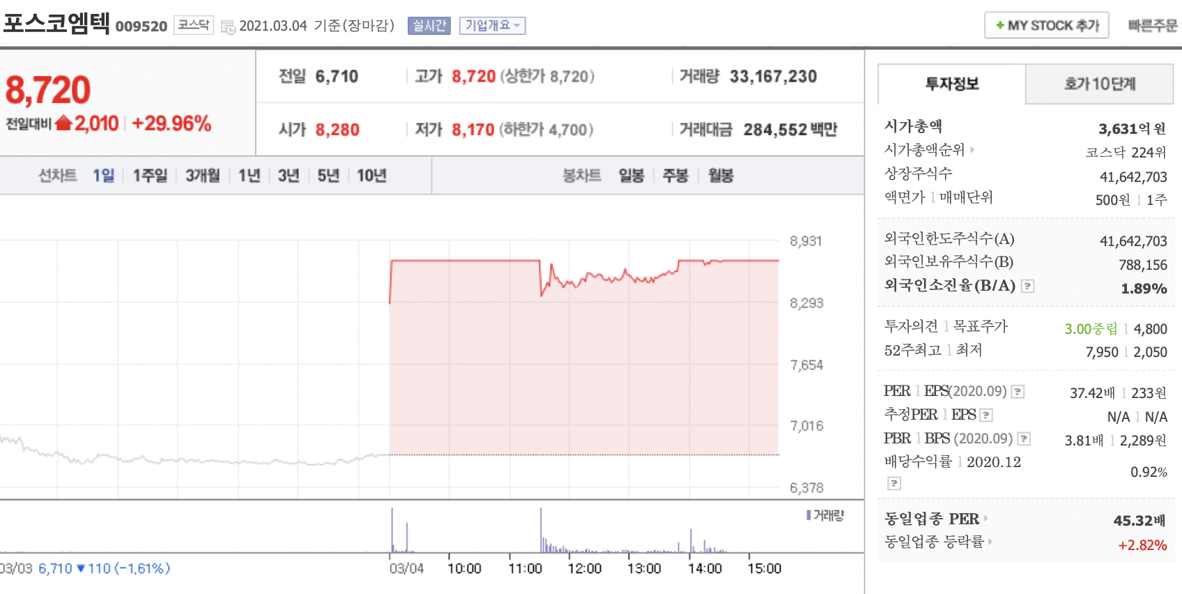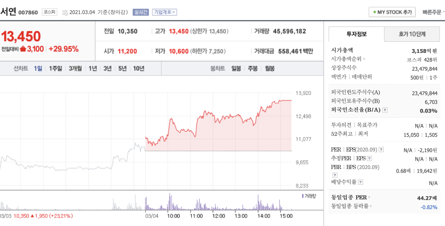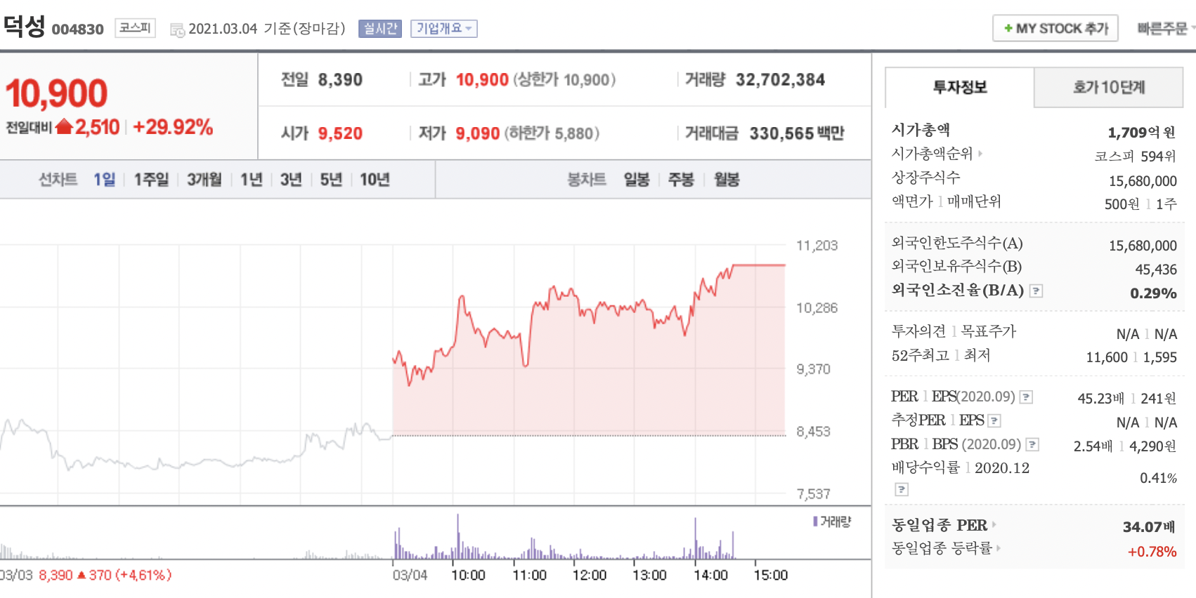 서연 주가 상한가 & 덕성 주가 & 덕성우 주가 & 포스코엠텍 주가 상한가 &
